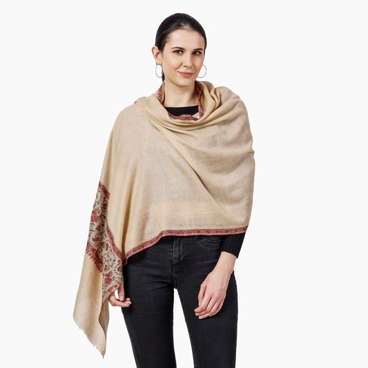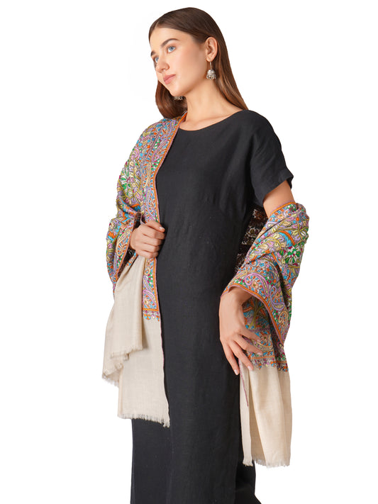 Chic Pashmina Shawl – Effortlessly Stylish Pashmina With Hand Embroidery - Off White