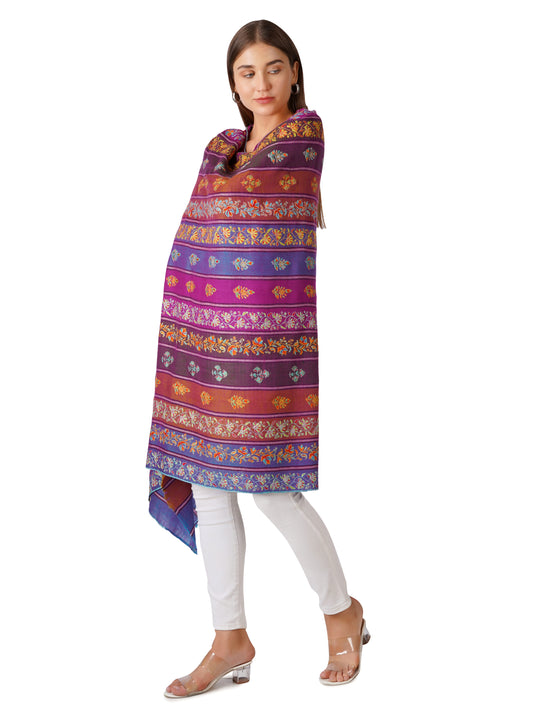 Stylish Stripes Pashmina Shawl with Floral Designs - Multi Color Stripes