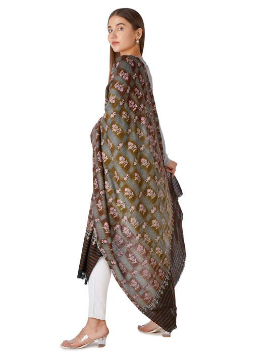 Luxurious Brown Pashmina Shawl with Intricate Sozni Embroidery