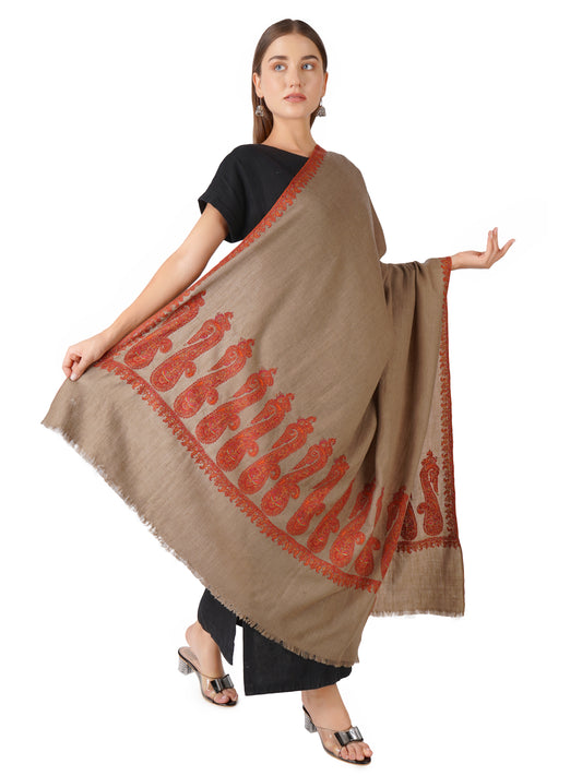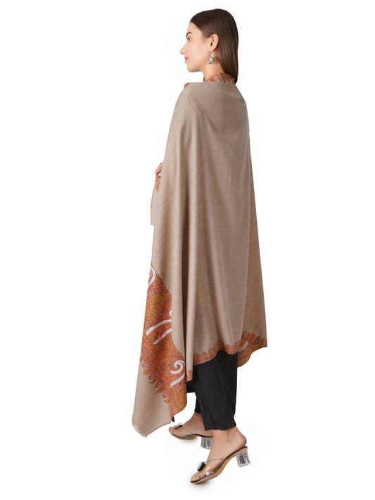Pashmina Shawl Hand Embroidered in Kashmir - Natural Toosh
