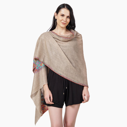 Cashmere Pashmina Embroidered Scarf (Natural Toosh)