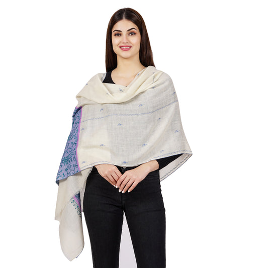 Cashmere Pashmina Embroidered Scarf (White and Blue)