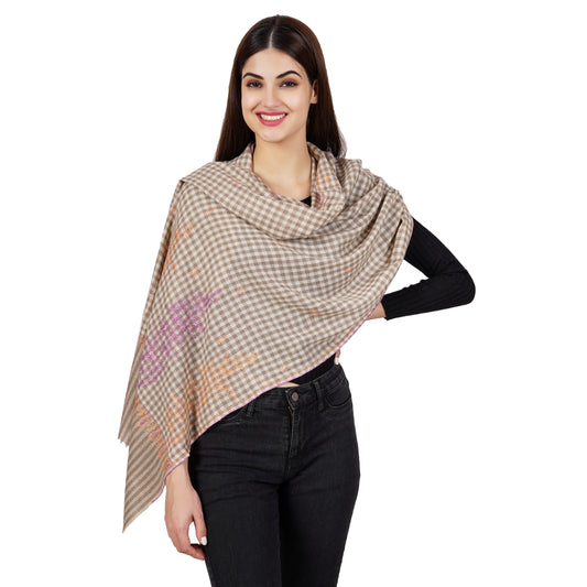 Cashmere Pashmina Embroidered Scarf (Checkered)