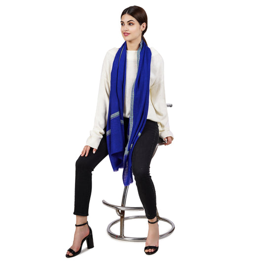 Cashmere Pashmina Embroidered Scarf (Royal Blue)