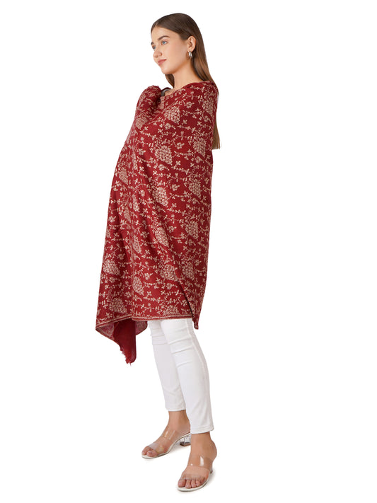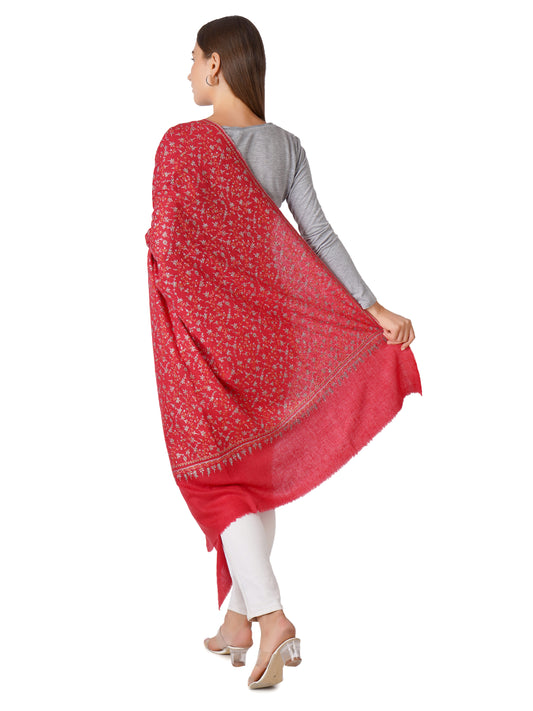 Elegant Red Pashmina Shawl with Floral Embroidery