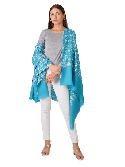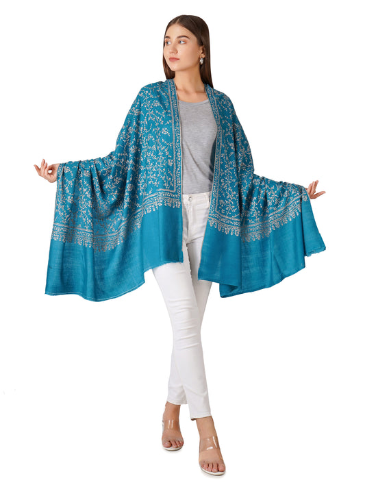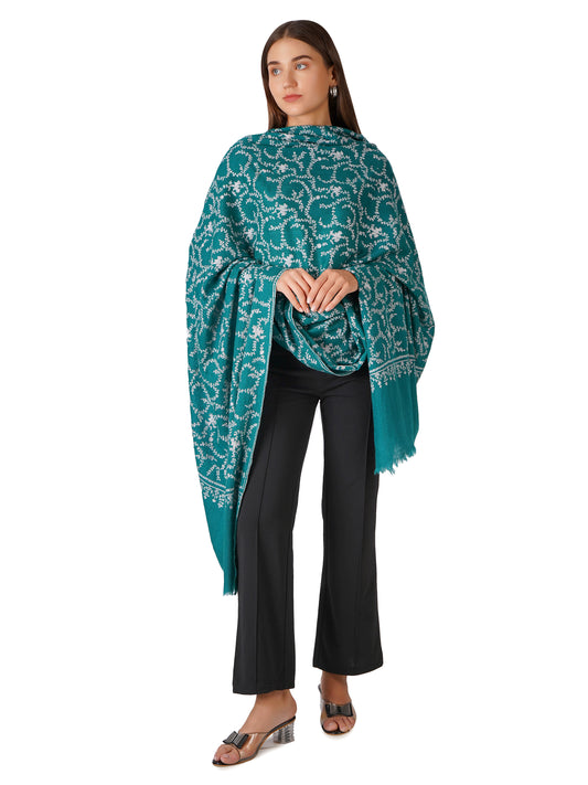 Beautiful Teal Green Pashmina Shawl with Leaf Embroidery - Luxurious Feel