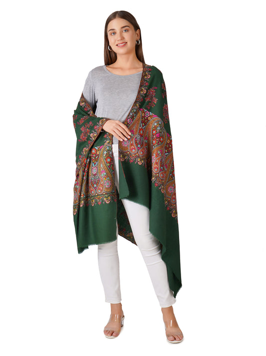 Classic Green Pashmina Shawl with Elegant Embroidery