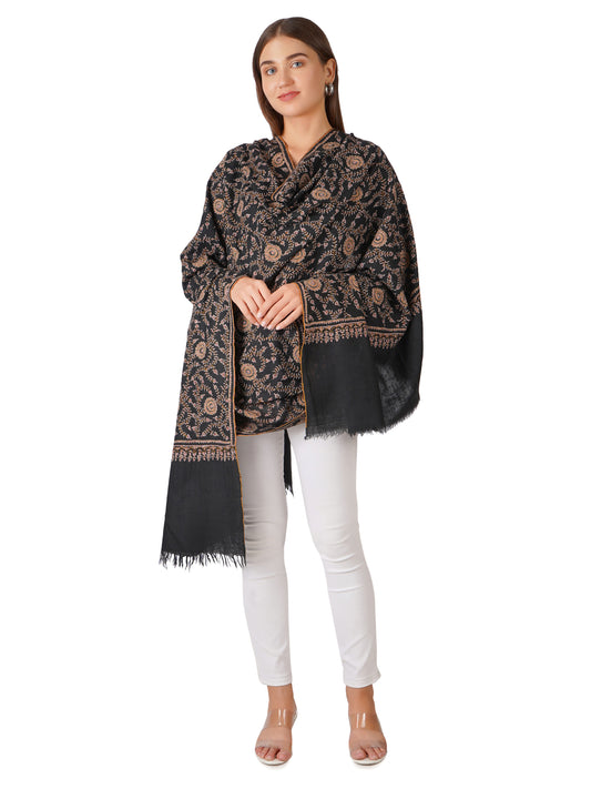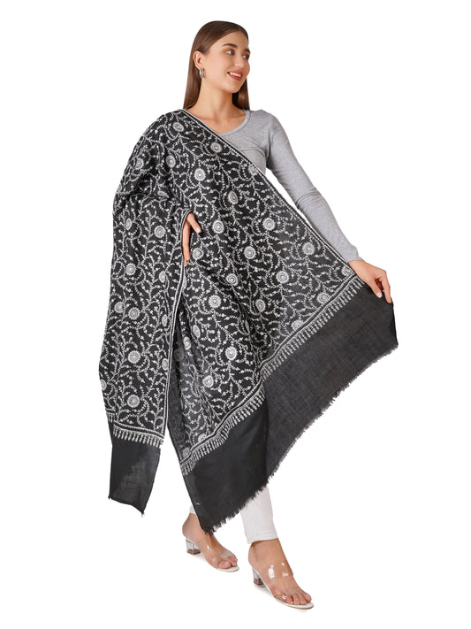 Beautiful Black Pashmina Shawl with Intricate Embroidery