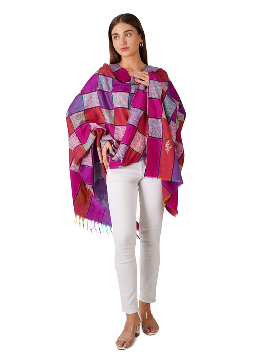 Elegant Checkered Pashmina Shawl with Sozni Hand Embroidery