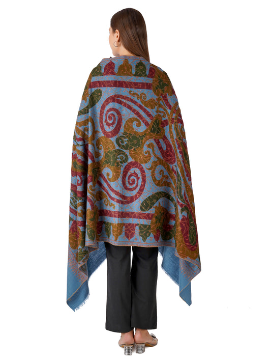 Stylish Blue Pashmina Shawl with Intricate Paisley Design
