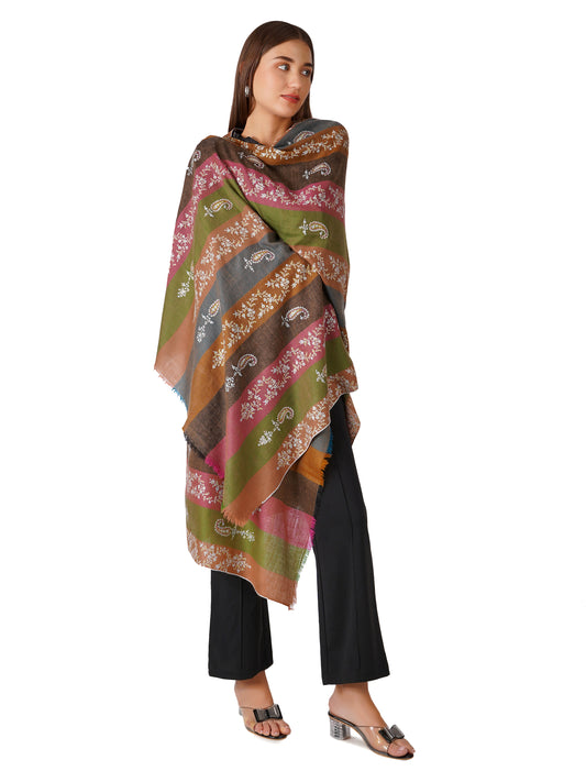 Vibrant Pashmina Shawl Striped With Multi Color Embroidery