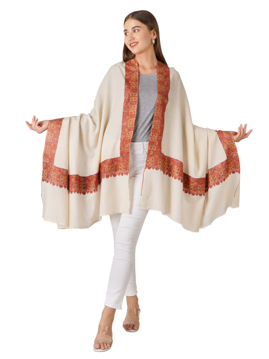 Luxurious Pashmina Shawl with Intricate Border Embroidery (Off White)
