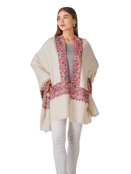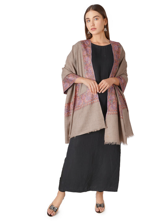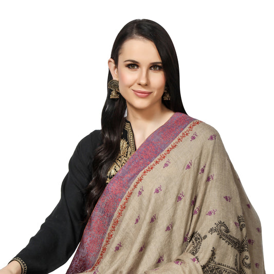 Pashmina Shawl with Multi Color Hues Embroidery - Natural Toosh