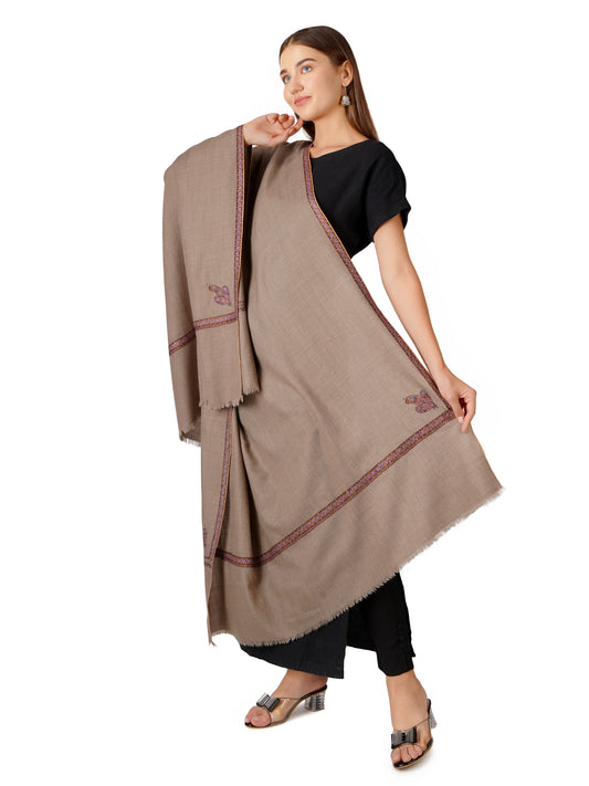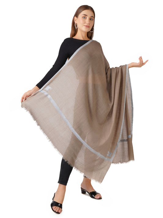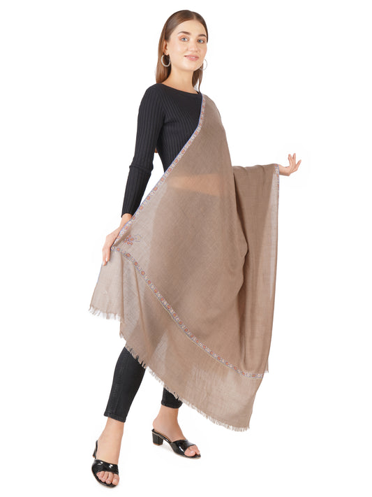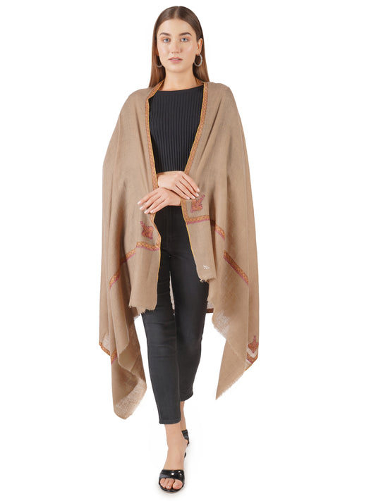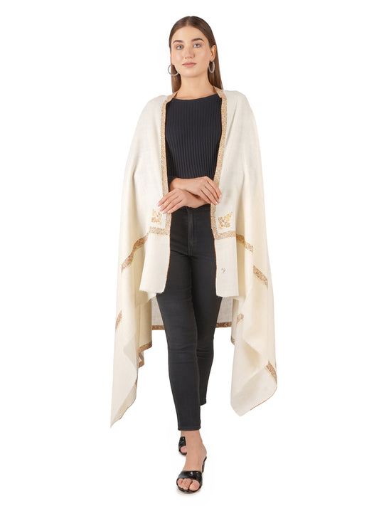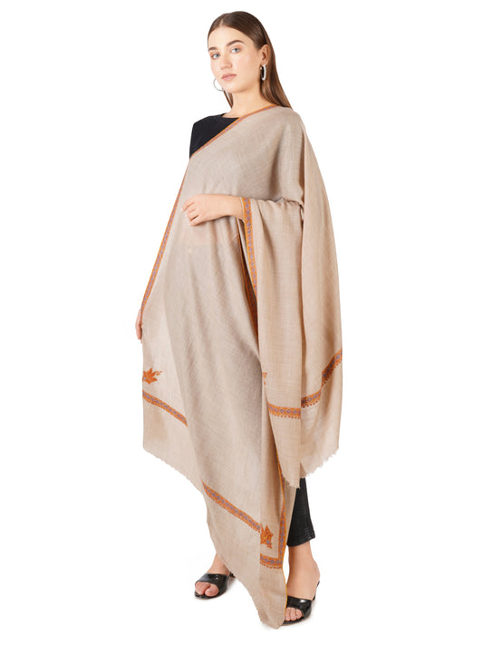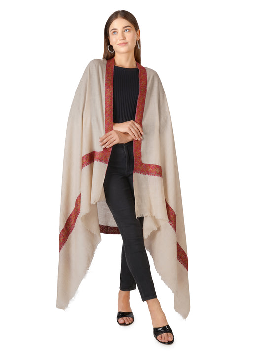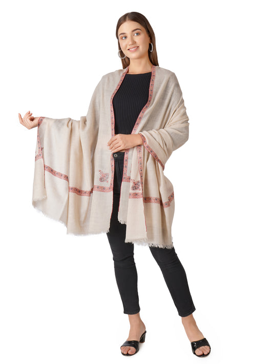 Pashmina Shawl Handmade with Graceful Embroidery - Natural