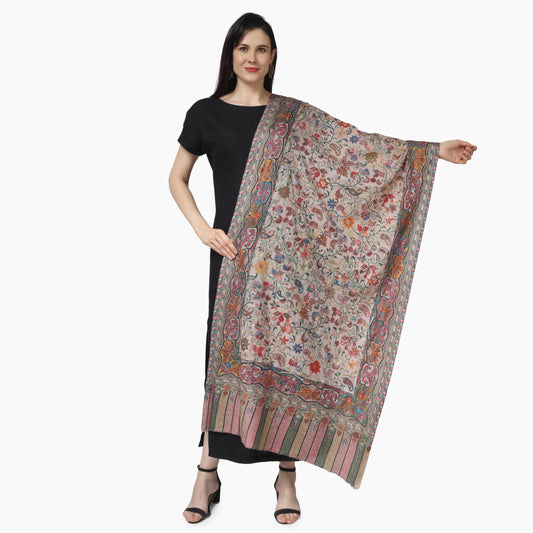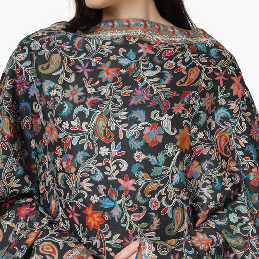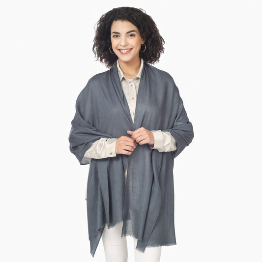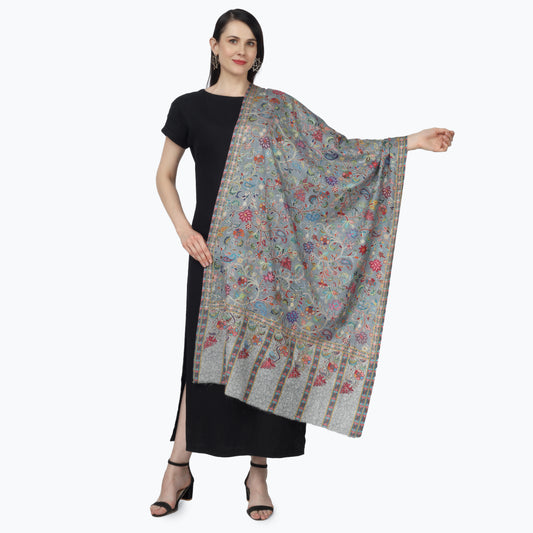 Kashmiri Kalamkari Wrap (Steel Blue)