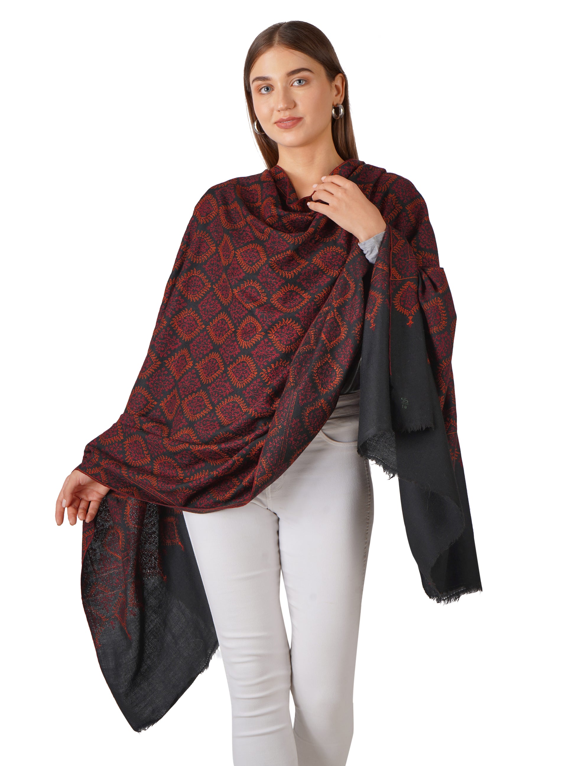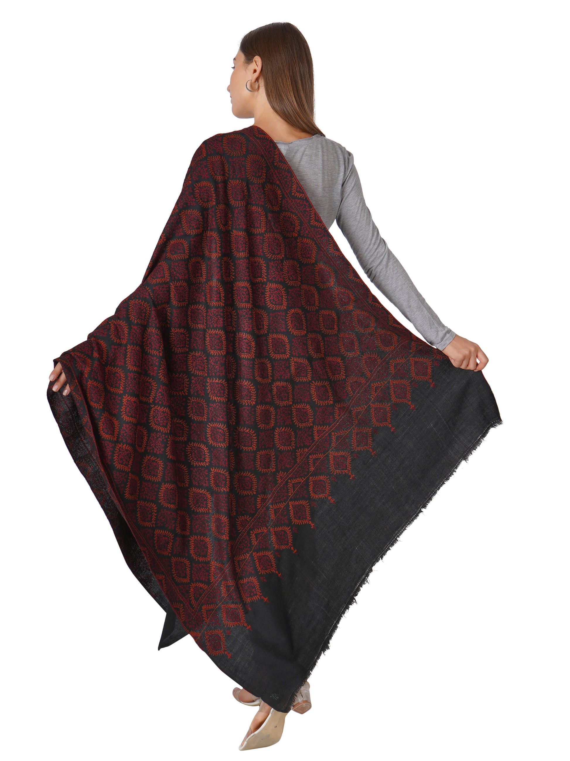 - Hand Embroidered Pure Kashmiri Pashmina Shawl