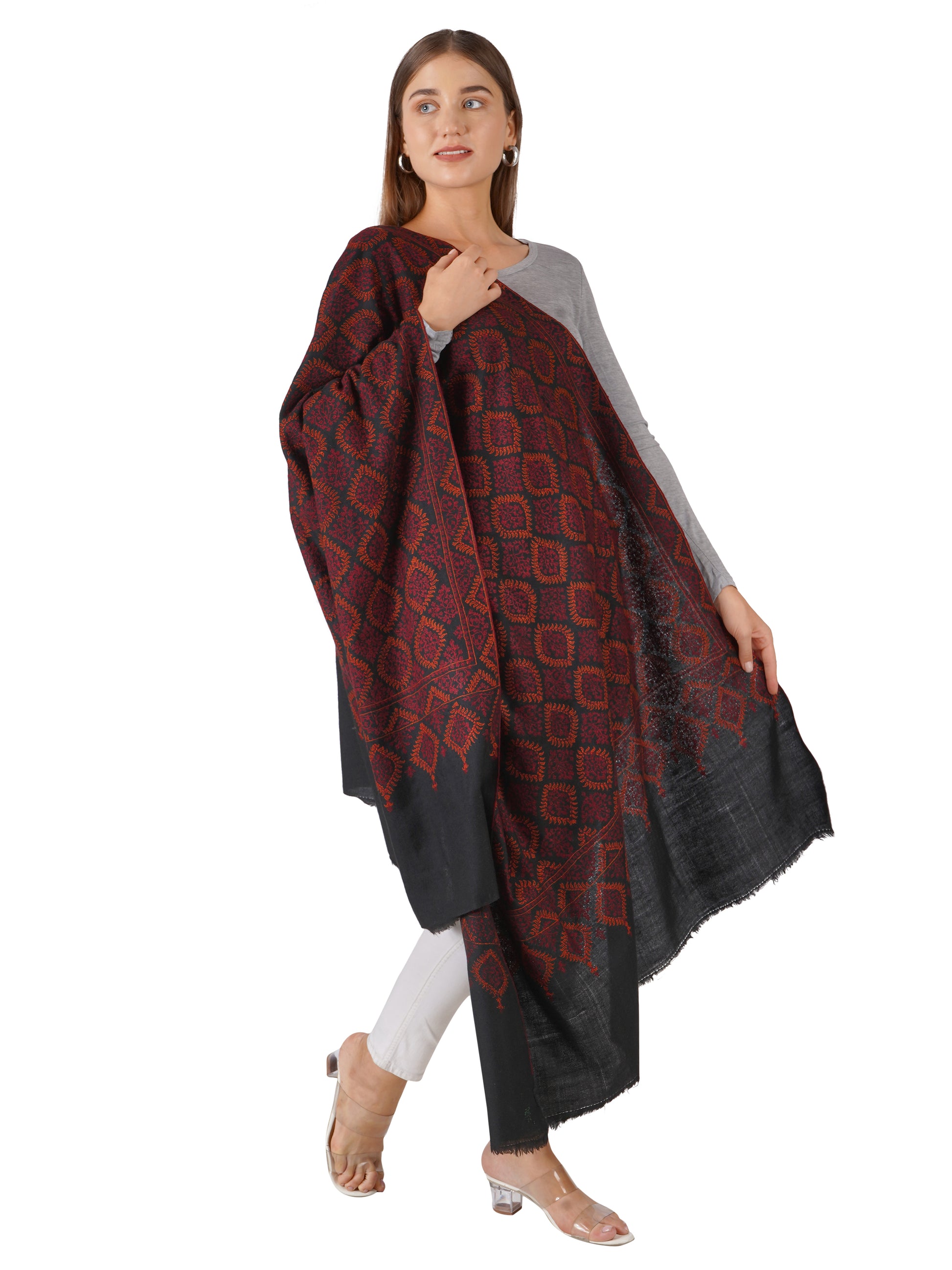 Each shawl is meticulously handcrafted by skilled artisans in Kashmir, preserving traditional weaving techniques and intricate embroidery. This dedication to craftsmanship ensures a high-quality product that not only enhances your wardrobe but also celebrates centuries-old craftsmanship.
