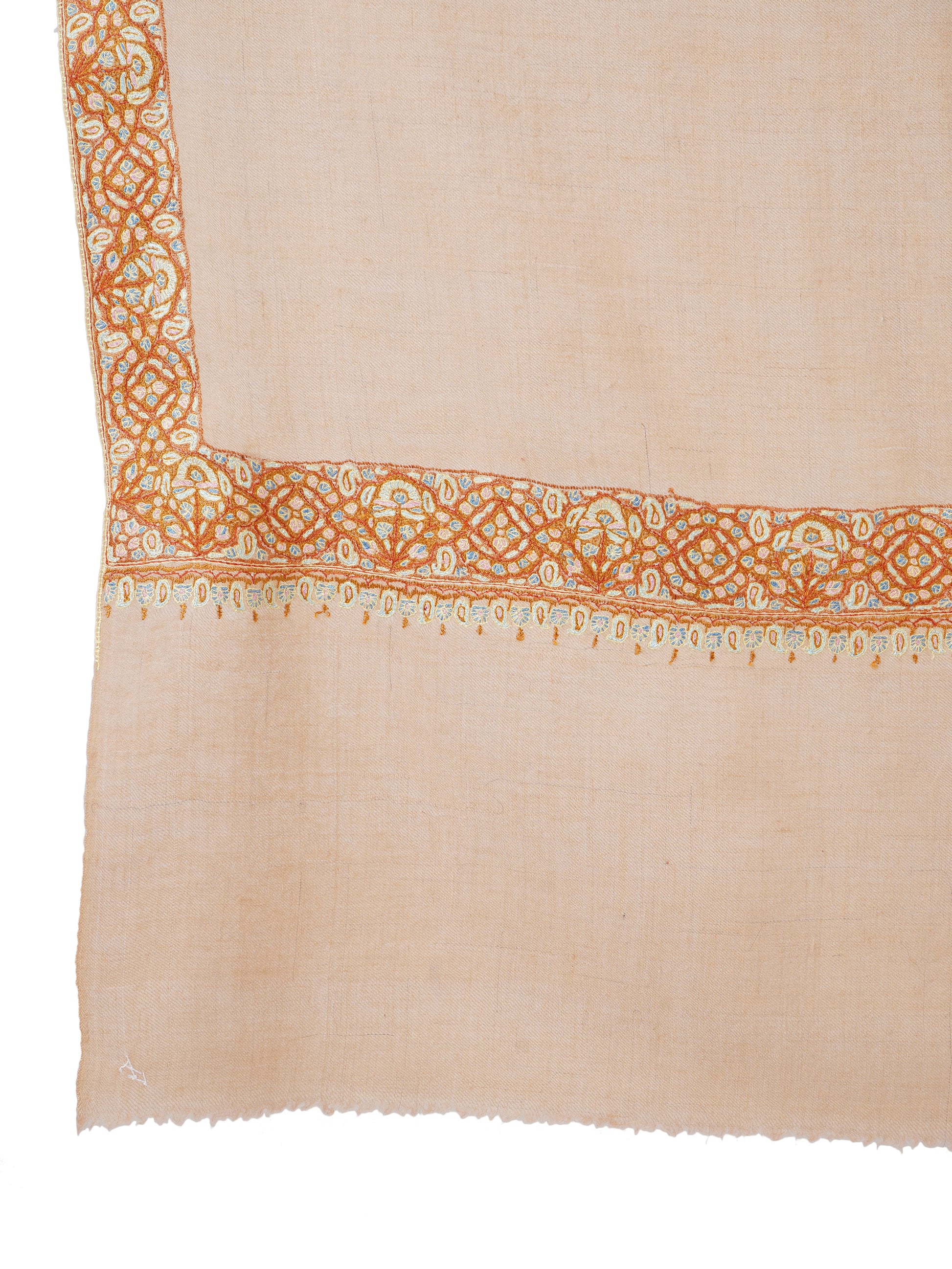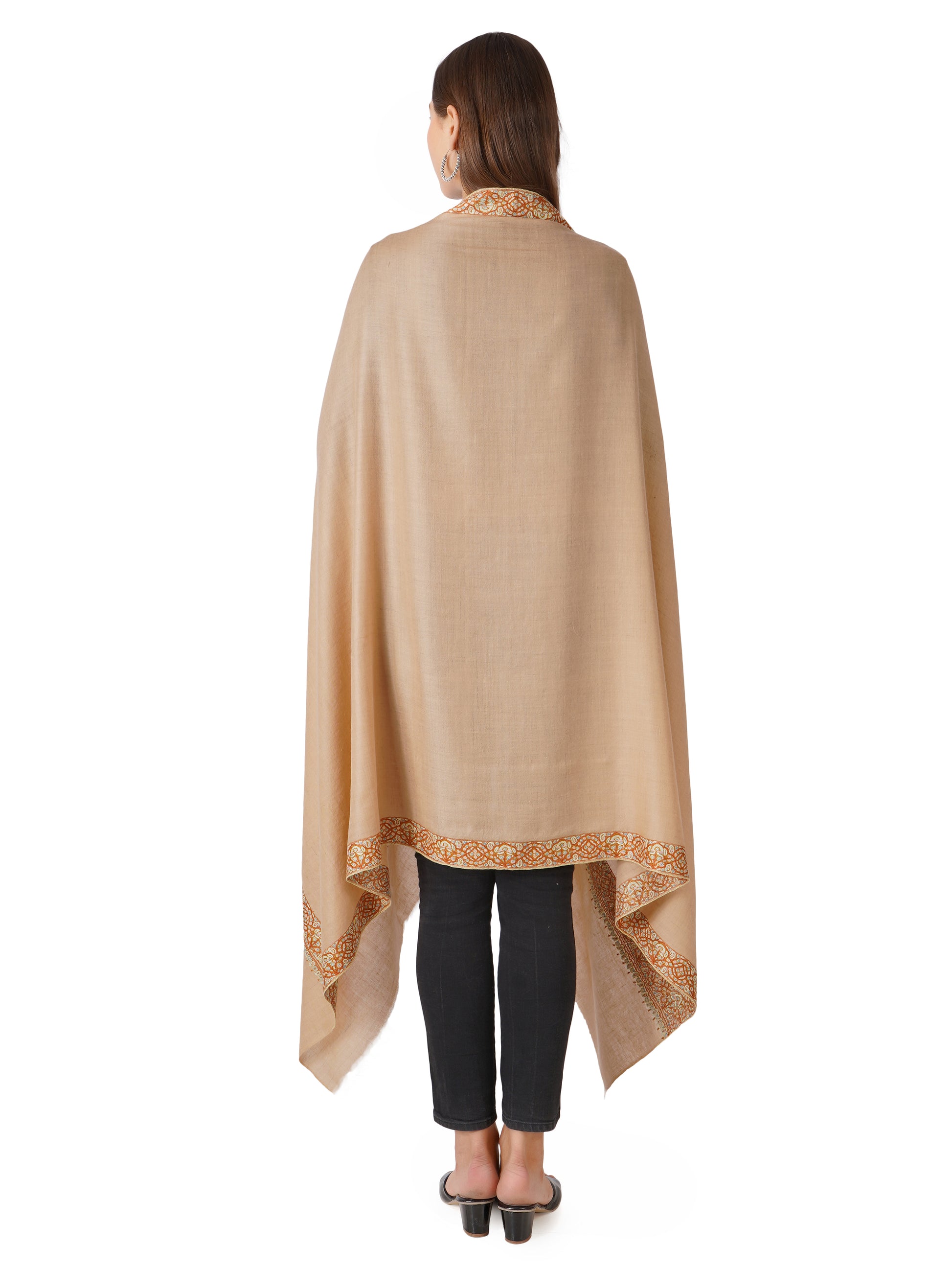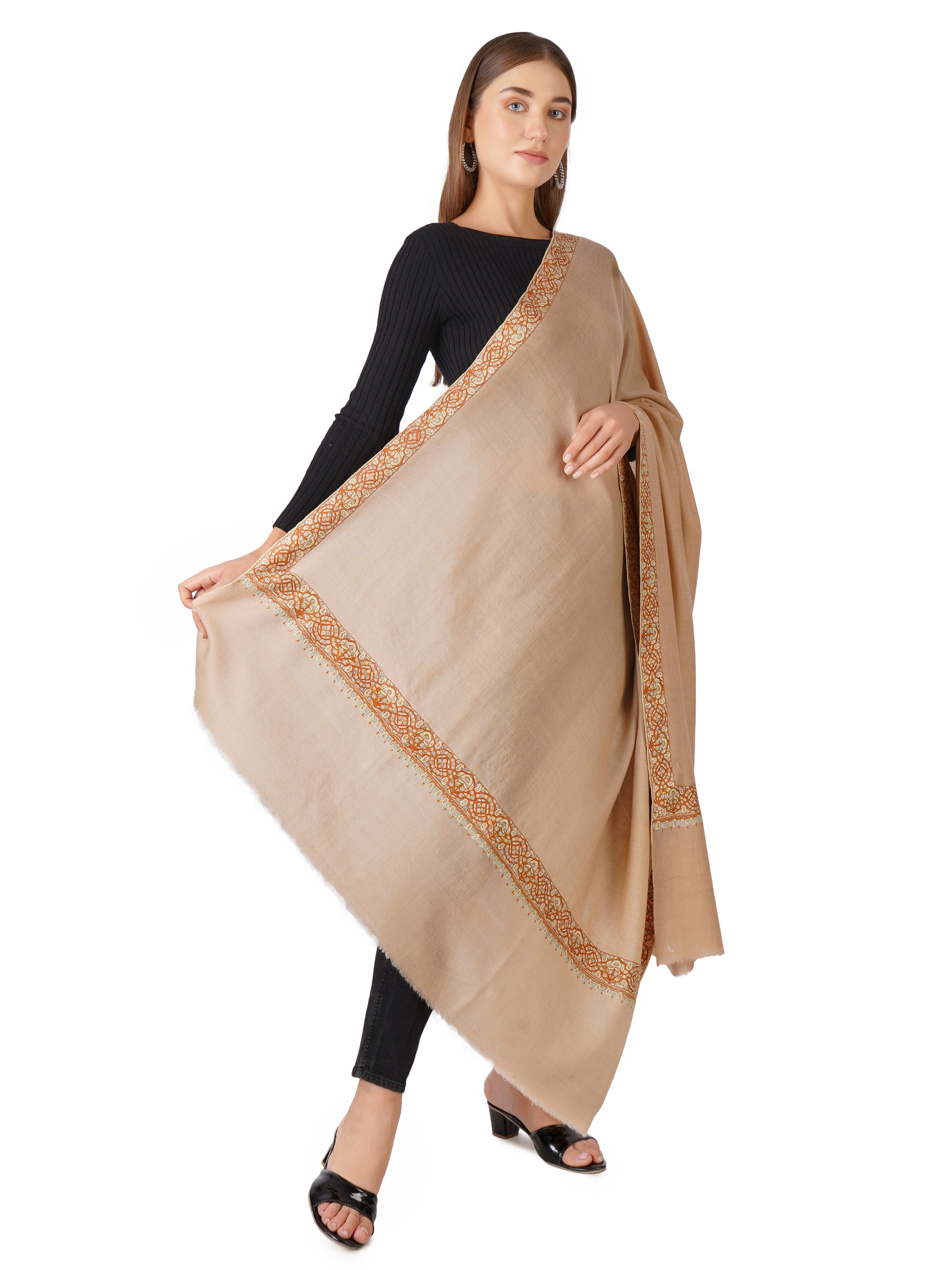 Pashmina Shawl Handmade with Graceful Embroidery - Natural