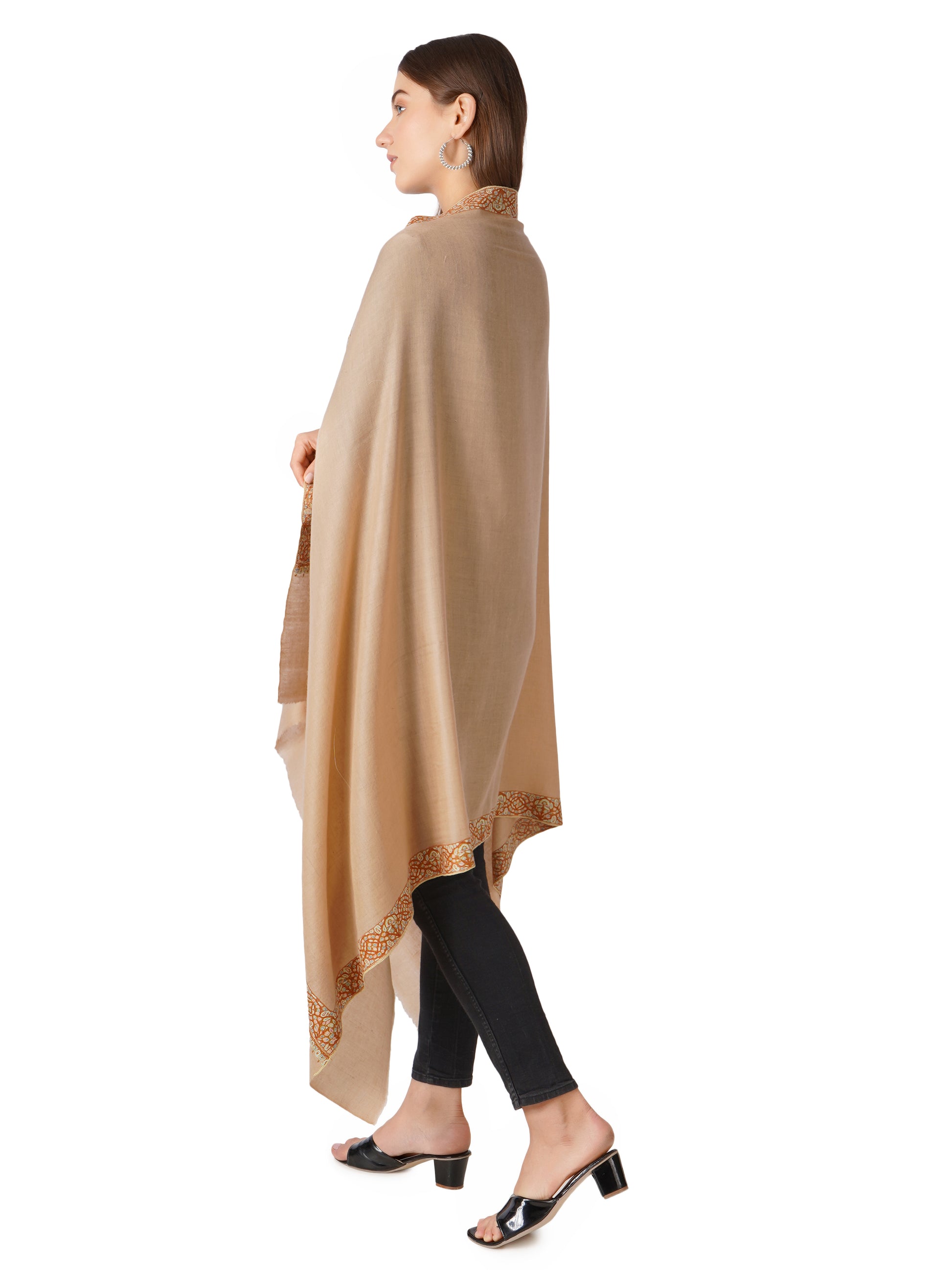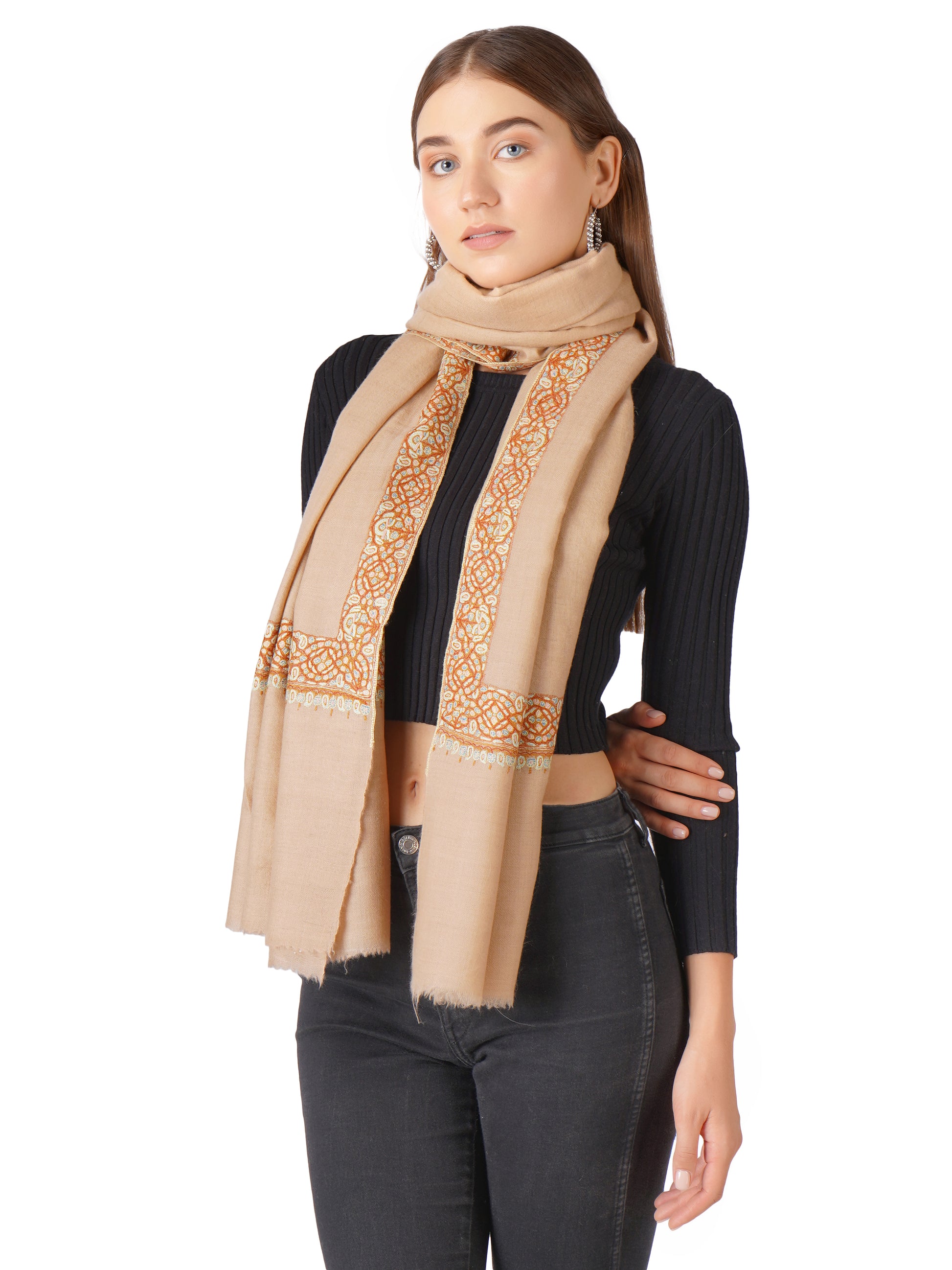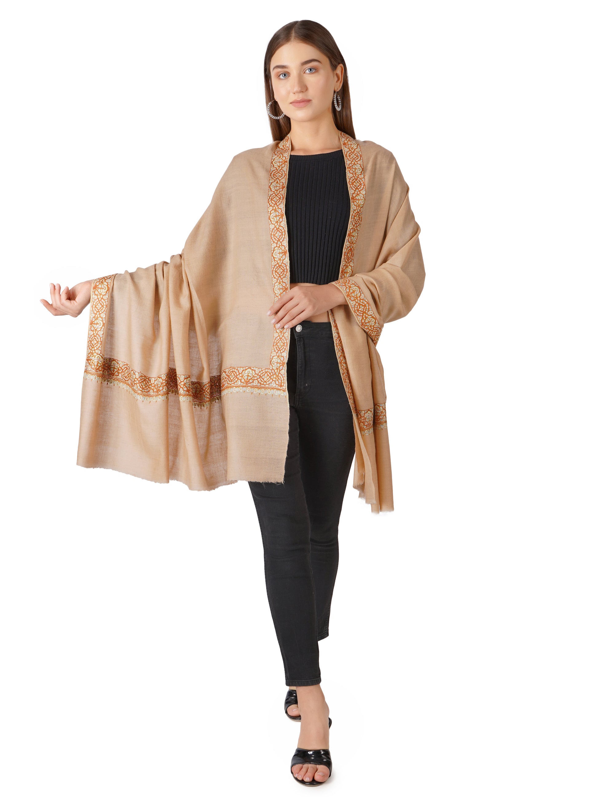 Pashmina Shawl Handmade with Graceful Embroidery - Natural